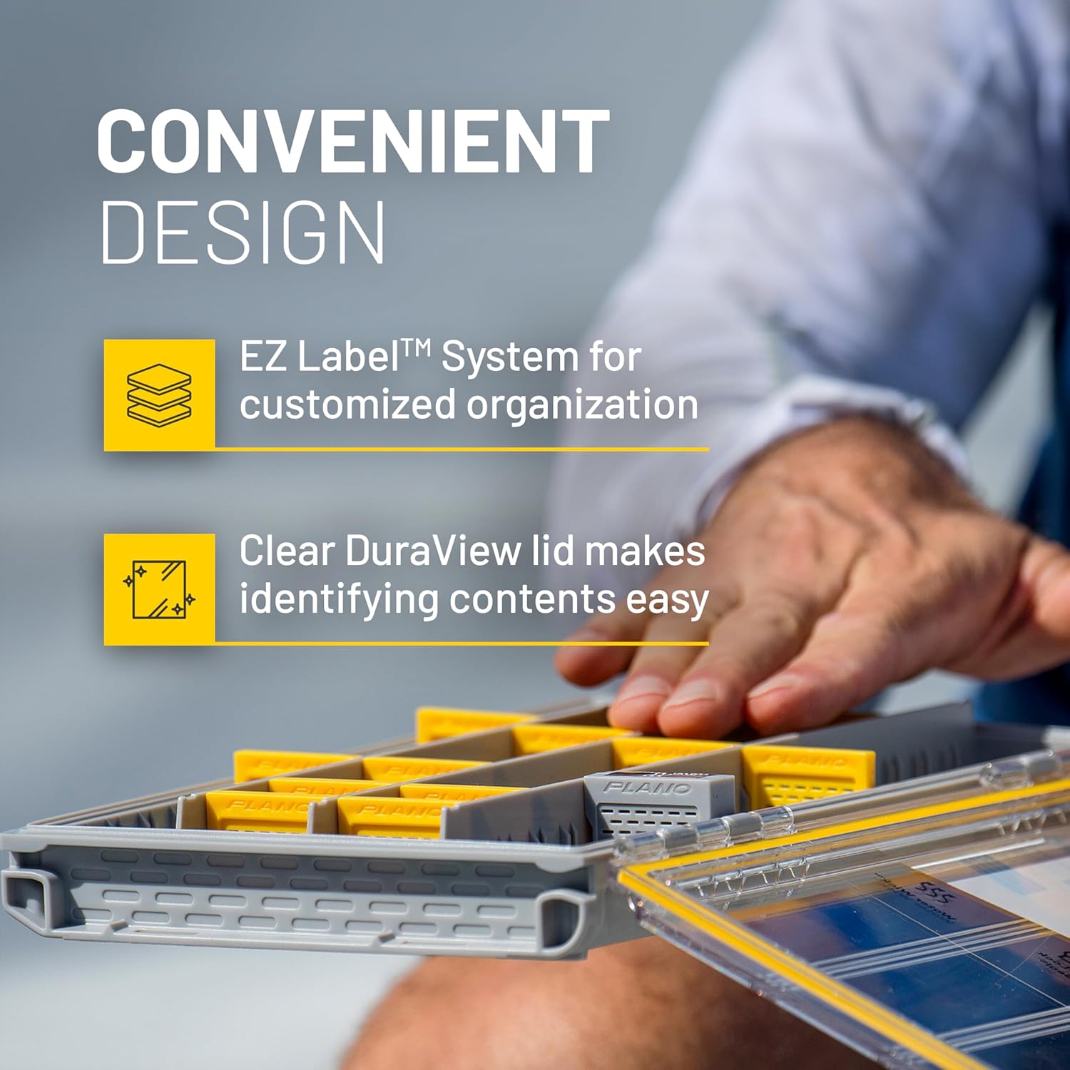 Plano Edge 3700 Spinnerbait Utility Box, Gray and Yellow, Holds Up to 36 Individual Spinnerbaits, Rust-Resistant and Waterproof Bait Storage Organizer