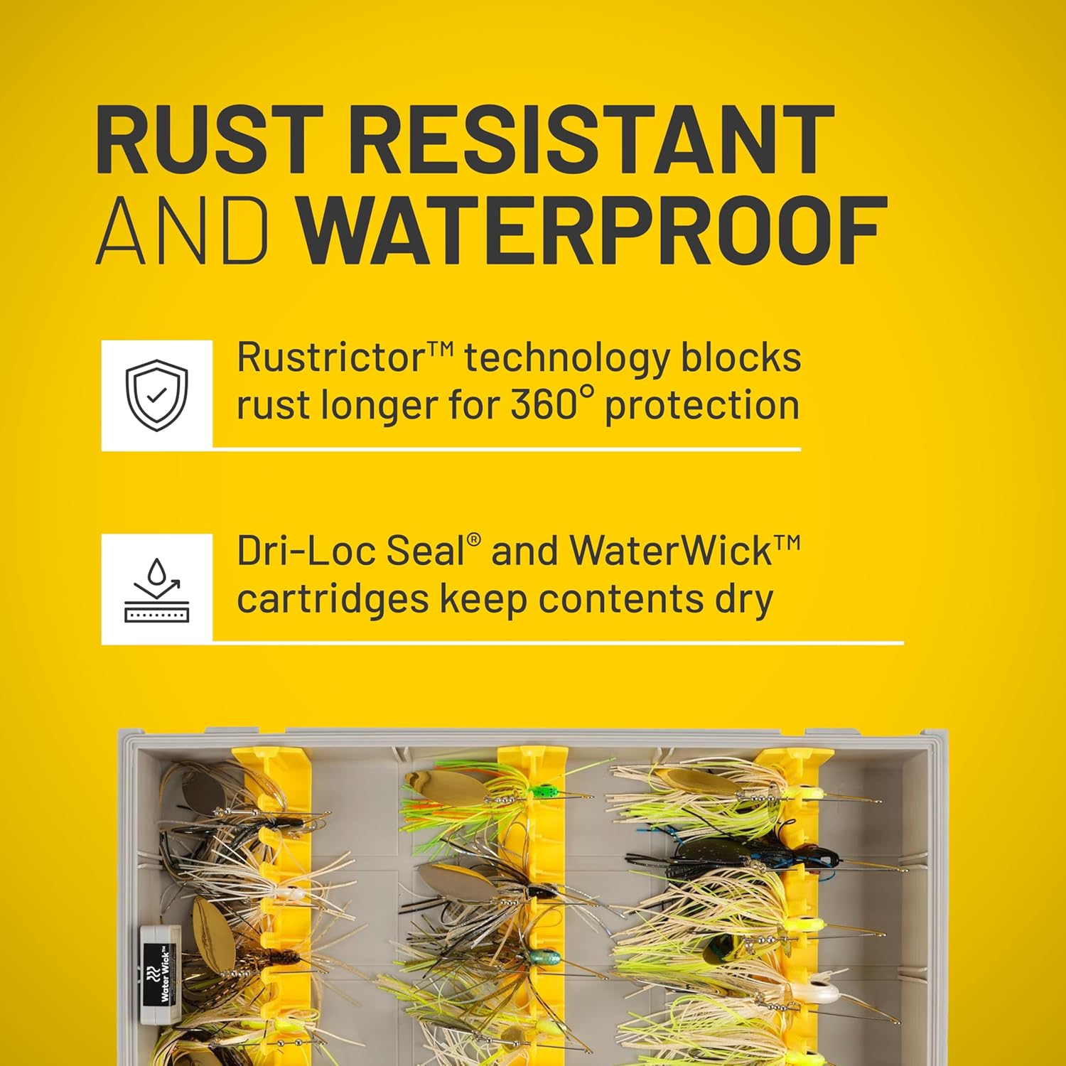 Crafted in a sleek gray and yellow color scheme, the Plano Edge 3700 Spinnerbait Utility Box not only offers practical functionality but also adds a touch of style to your fishing gear collection. Its durable construction is rust-resistant and waterproof, ensuring that your valuable spinnerbaits stay in top condition season after season.