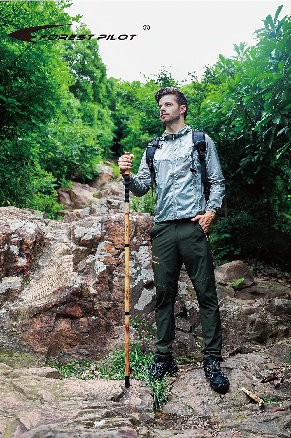 Trekking Poles- 1-pc Pack – Adjustable Hiking or Walking Stick –Strong, Natural Beech Wood – Quick Adjust Flip-Lock – Beech Wood Grip, Leather Strap